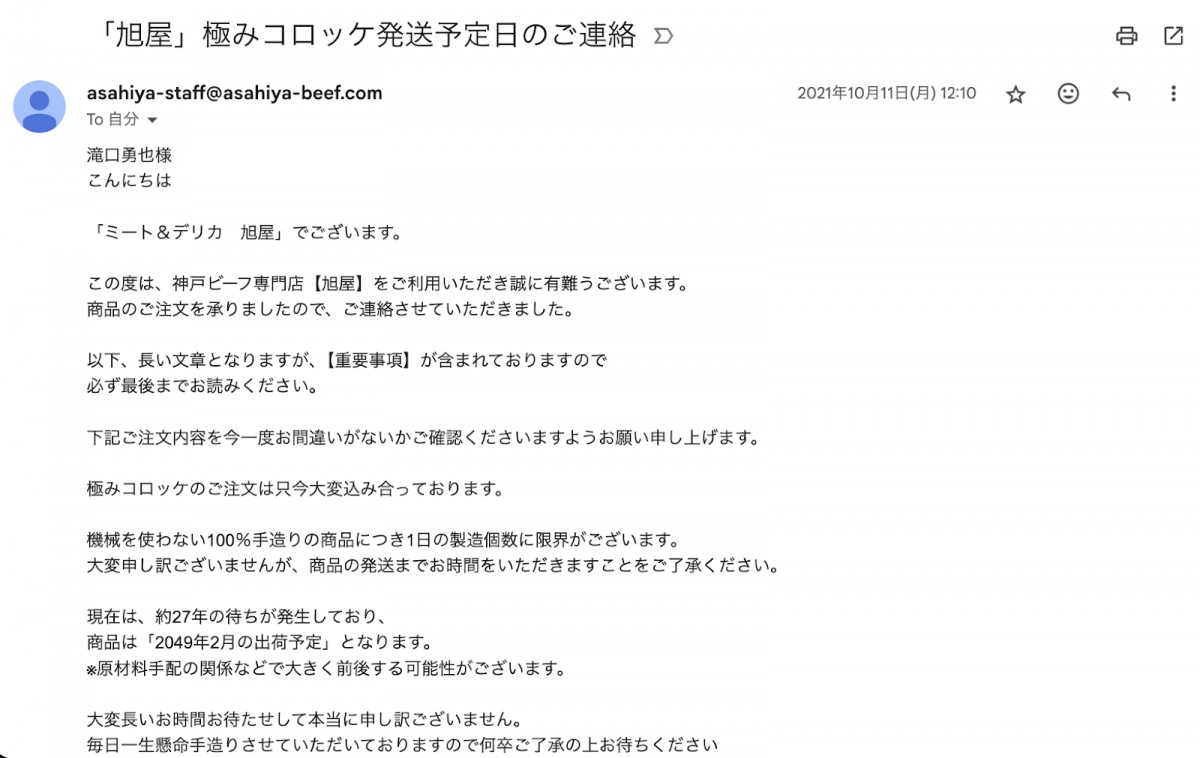 ちなみに…このコロッケ、今は約43年待ちだそうです。